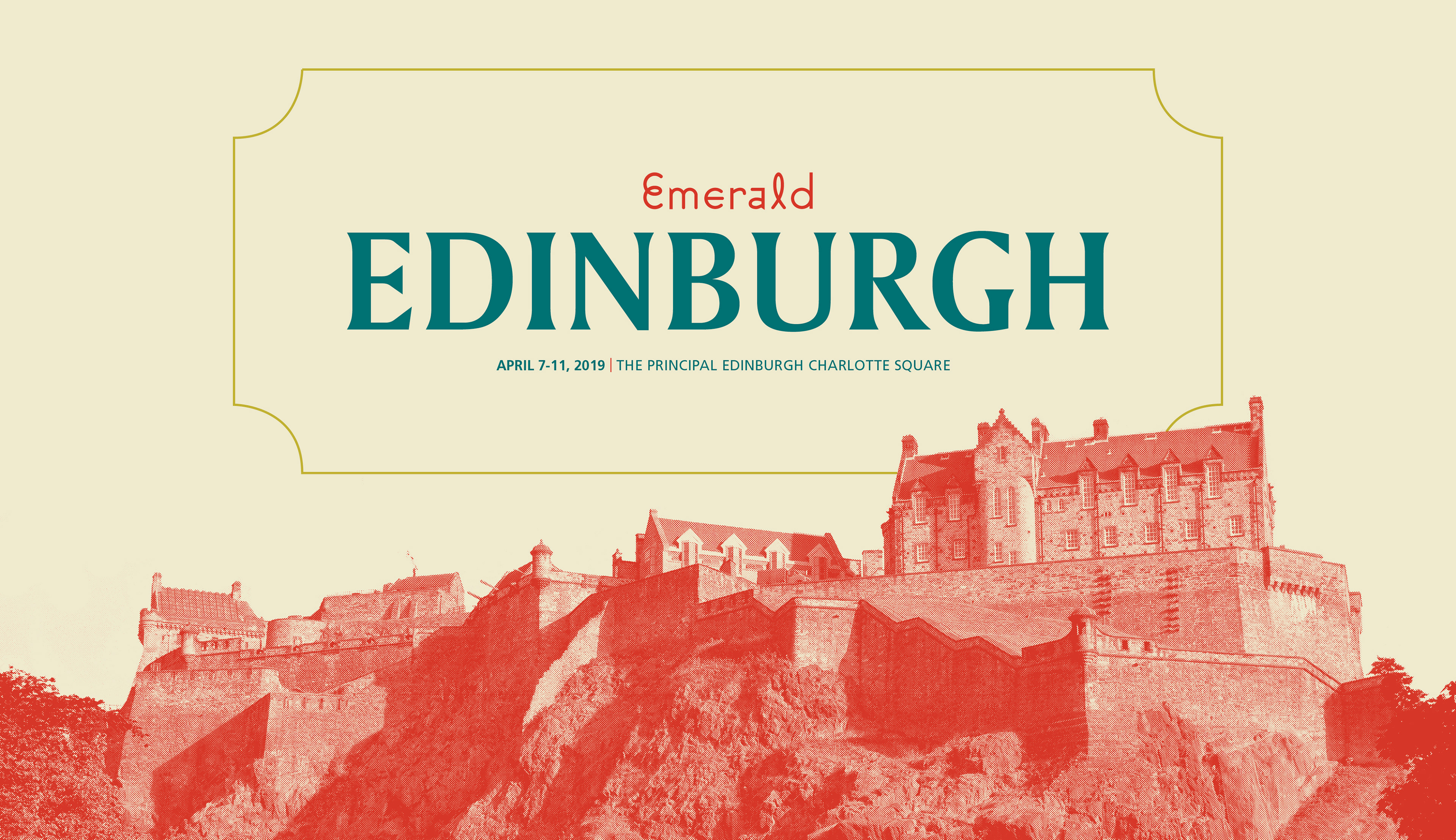 Visual identity for Emerald 2019, an annual event hosted by Manulife which was held in Edinburgh, Scotland. /// Identité visuelle pour Émeraude 2019, un évènement annuel organisé par Manuvie qui se déroula à Édimbourg en Écosse.